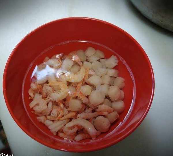 第1步、幹貝和蝦米提前浸泡。