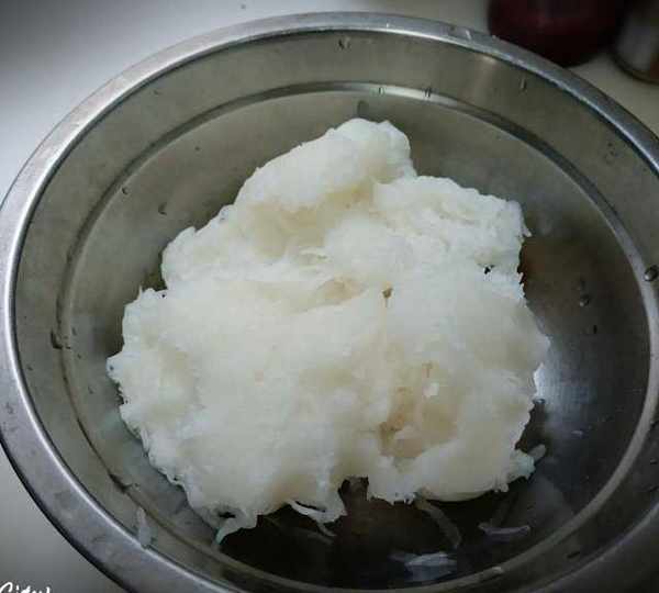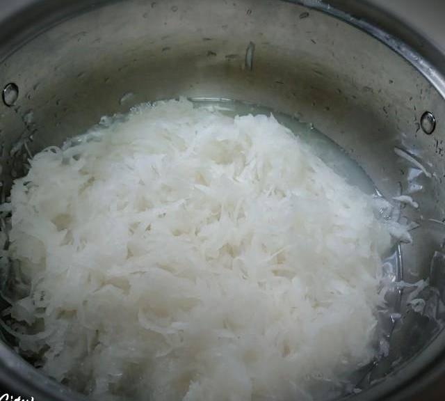 第2步、白蘿卜去皮搓絲,用鹽醃制。