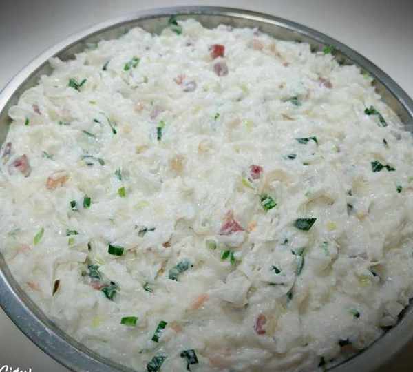 原料:白蘿卜、粘米粉、淀粉、臘腸、蝦米、幹貝、蒜苗、鹽、花生油。