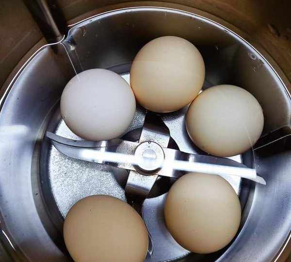 第1步、雞蛋外殼用流水沖洗幹凈,放入鍋中,加1勺鹽,加沒過雞蛋的清水,中火煮開後煮10分鐘,將雞蛋煮熟。我偷懶,用料理機煮的。