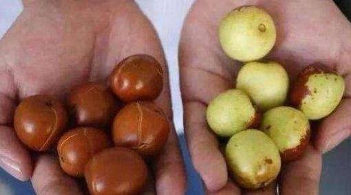 最後是顏色,棗在生長的過程中,因為光照的不同,所以棗的表皮上有一片紅一片青,這樣的棗就很正常,但是紅色的部分,分佈的很均勻,尤其是買回傢後放一天就整體變紅瞭,那你就要註意瞭,這樣的冬棗就是被糖精鈉泡過的,泡過糖精鈉的棗紅色部分明顯,就跟染瞭色似的。大傢掌握瞭嗎