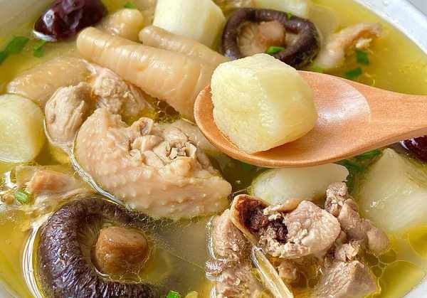 雞肉,黨參,沙參,當歸,玉竹,黃芪,紅棗,枸杞,薑片。