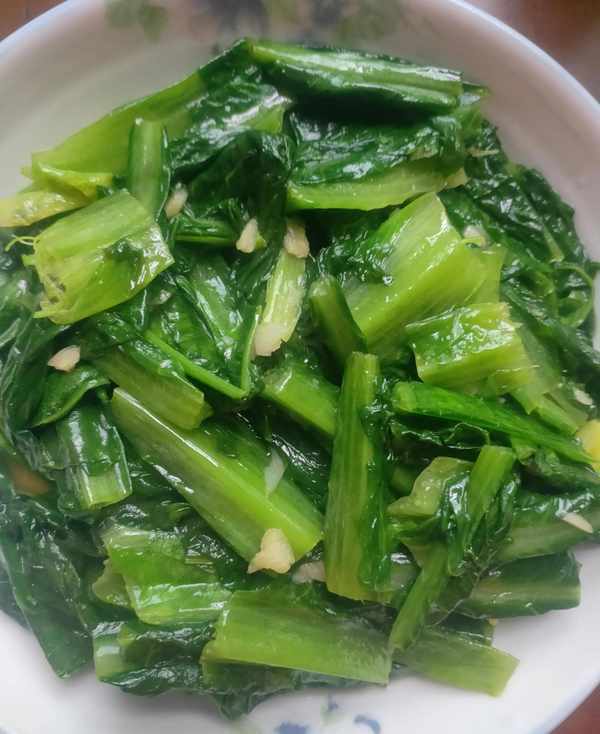 食材:油麥菜400克,蒜末少許,蠔油少許,豬油適量。
