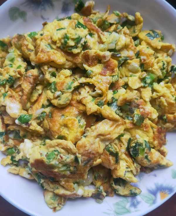 3.鍋燒熱加油,放香蔥雞蛋液下鍋煎至兩面微黃,用鍋鏟劃成小塊即可。