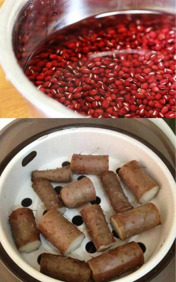 食材:紅豆40g,鐵棍山藥300g,細砂糖8g,清水