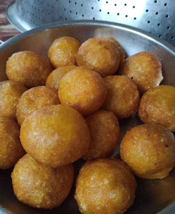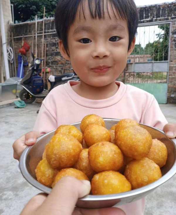 甜甜糯糯又美味的南瓜丸子完成瞭~好香