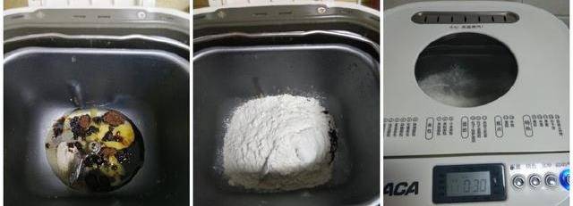 5.放入高筋面粉,將面包桶放入面包機中,開始“自定義和面程序”。(和面的時候,一定要根據面粉的吸水性來添加,這也就是前期的時候要先少加水。)