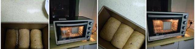 12.將所有面團做好,放入吐司盒中。烤箱中放一碗熱水,放入面團進行二發。