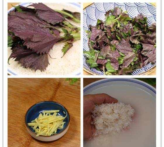 原料:一把紫蘇葉、350克的大米、一塊生薑、一個玻璃罐
