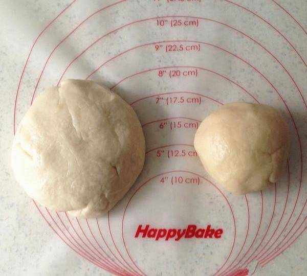 1.首先把油皮用料混合,揉至出膜。再把油酥用料混合揉至光滑即可。把油皮和油酥面團蓋上保鮮膜餳30分鐘。