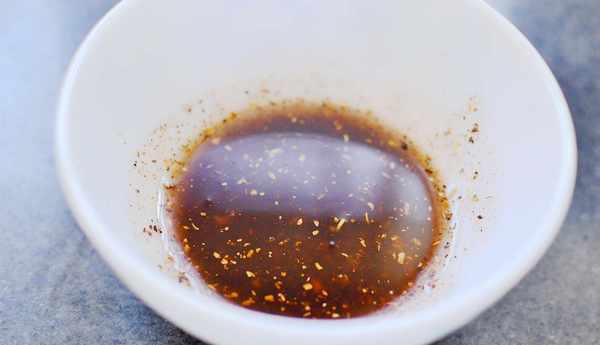 3、然後將椒鹽粉中加入適量的油拌勻成比較稀的樣子。另外我們要準備適量的香蔥末,要盡量切得細的那樣。