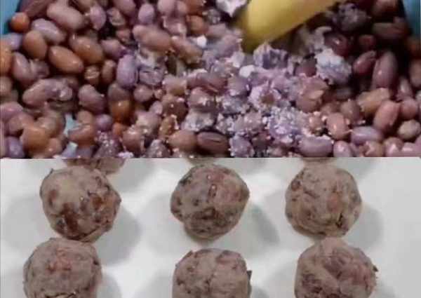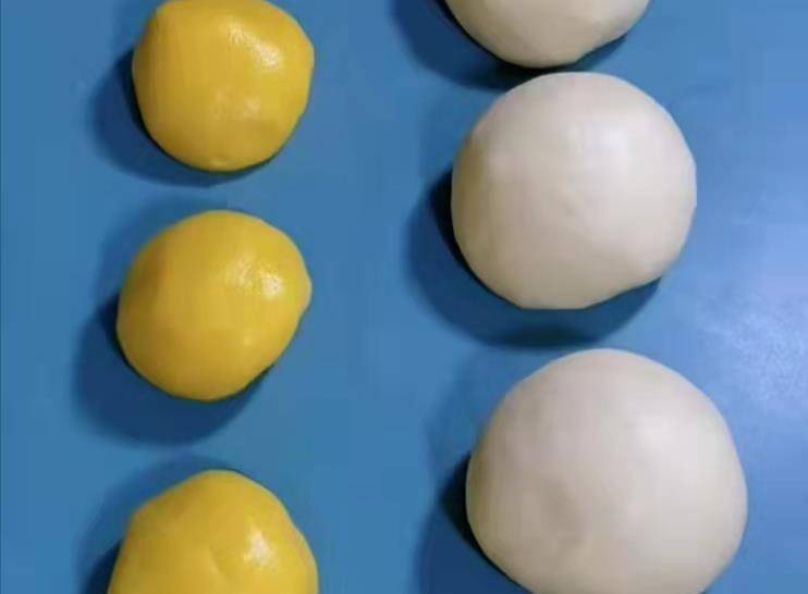 1.浸泡一夜的紅豆煮熟之後,加適量白糖,碾碎成泥,團成小球備用,