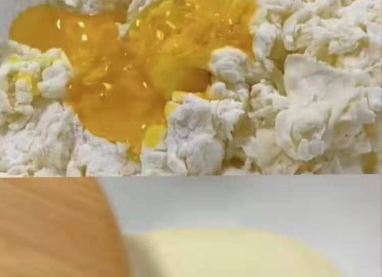 3.碗中放入150克面粉,75克食用油,和成油面團,