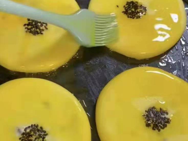 8.平底鍋刷油,放入做好的紅豆餅,餅的上下刷滿油,