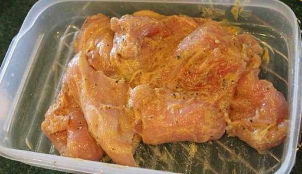 Step1.雞胸肉去皮去三角骨,切成幾條大雞柳,以少許鹽、胡椒、芥末醃過備用。芥末醬如果是那種有顆粒的也是可以。
