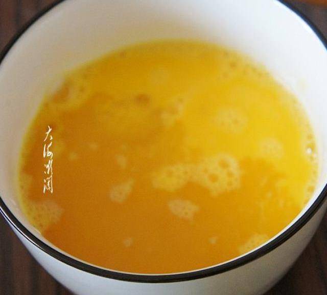 第3步、雞蛋打散,攪拌均勻,加點料酒,這是雞蛋不腥的最好方法,如果換成白酒,你會發現雞蛋更香,比料酒還好吃,不過一般傢庭可能不會常備白酒,加料酒也起到相同的作用。無論雞蛋、鵝蛋還是鴨蛋,都可以這樣操作,不腥口感還鮮嫩。