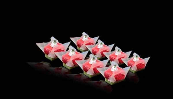 打好的紅腐乳山藥泥加入提前融化的吉利丁攪拌均勻,灌入墊有米紙皮的模具中冷藏定型。