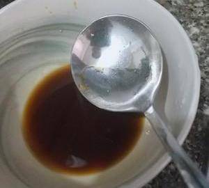 2、這裡調一個糖醋汁,6個青椒用:1勺生抽,1勺醋,1/3勺糖,一點雞粉和鹽,2勺水。