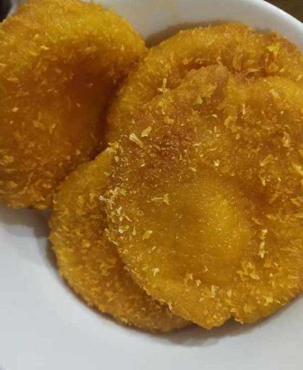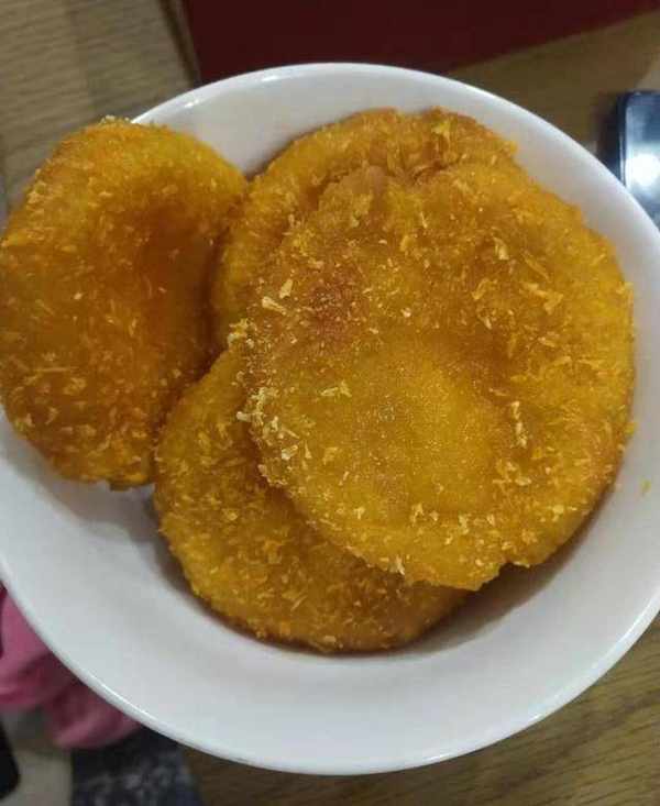 這是今天做的南瓜餅。看著就很香脆。我忘瞭拍材料。就直接口述吧。其實很簡單啦。準備一塊南瓜,洗幹凈上鍋蒸熟然後搗碎。喜歡吃甜點的可以往裡面放點糖。不放味道也很好。然後加入糯米粉攪拌揉成面餅。忘瞭拍。大傢別介意。用手揪一塊揉成小餅然後粘上面包糠放鍋裡炸就行。油溫不要高,免得炸糊瞭。其實小琴子想試試另一種在餅裡面放一點芝士的做法。隻是忘瞭買芝士,哎。下次試試在餅裡面包上芝士餡,估計會非常好吃。不過那就是熱量炸彈瞭。不怕胖的盆友可以試試。好吃告訴小琴子喲。今天的南瓜餅還是很成功滴。香脆可口。不說瞭口水快下來瞭,趕緊做去。