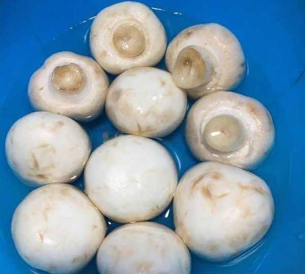 第2步、蘑菇用淡鹽水浸泡一會兒洗凈備用。