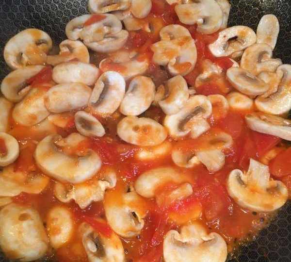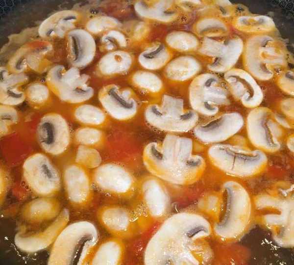 第7步、放入蘑菇片翻炒一分鐘。