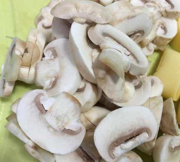 第5步、蘑菇切成片備用。