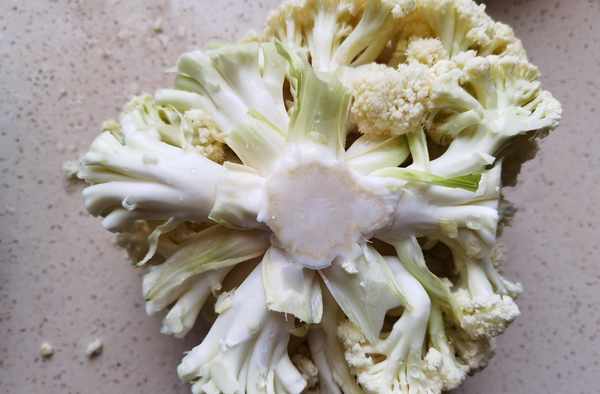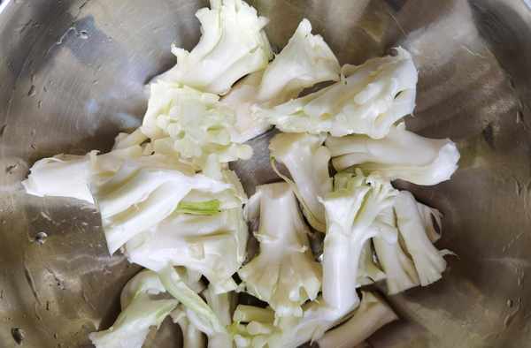 步驟一:菜花要選擇沒有長其他斑點的,這樣的菜花吃起來才是最健康的,如果是有其他的斑點存在,那麼會讓食物的味道變得很差,菜花的清洗是要費一番功夫的,最好是用清水浸泡清洗,這樣才能夠清晰的比較幹凈。