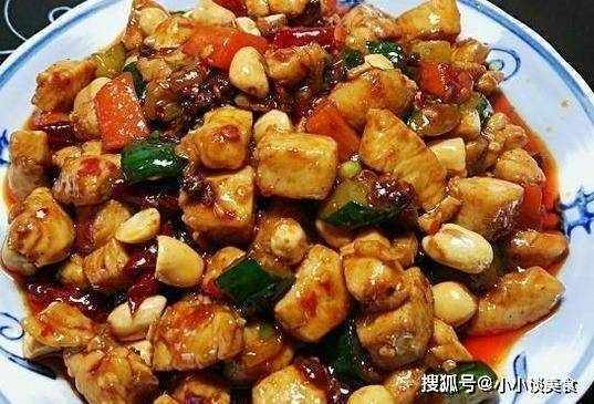 1.雞胸肉、紅蘿卜、黃瓜切塊,雞胸肉切丁,加入料酒、胡椒粉、1匙淀粉醃10分鐘。將花生米焯至表面起皺,晾涼後剝去外皮待用。