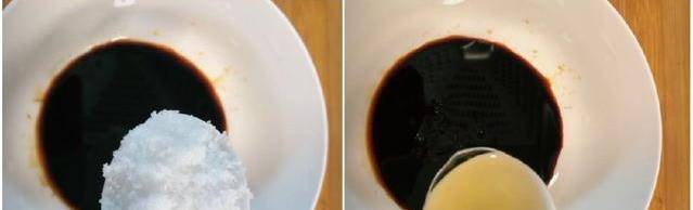 第三步:現在調一點料汁,一勺紅燒醬油,兩勺生抽,兩勺耗油,一勺料酒,一勺白糖,攪拌在一起,最好讓糖都融化瞭