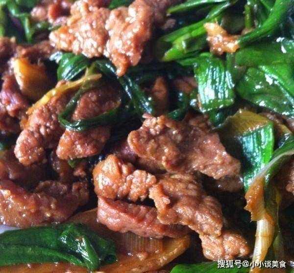 5、鍋內放適量油,炒牛肉和青菜,油多一點,薑片炒香;加入牛肉片;炒;在所有牛肉變色之前,加入蒜白;,牛肉完全變色;加入大蒜和芹菜,繼續炒;牛肉絕對好吃!美好的;