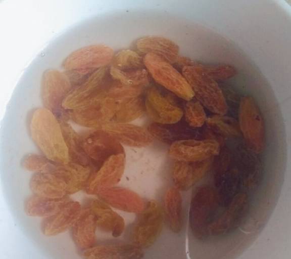 第2步、取適量葡萄幹,開水洗幹凈。