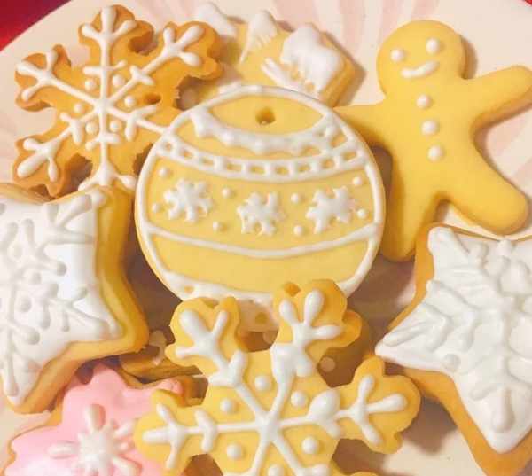 8.根據自己的喜好隨意裝飾就行瞭,等打底色的糖霜等完全冷卻後再進行進一步裝飾。