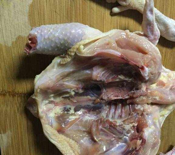 第1步、一斤多的三黃雞1隻(三黃雞做出來的又嫩又香,最好別用其他雞),去掉內臟。去掉雞頭雞腳雞屁股,用廚房剪或者刀,從雞胸部切開。用水沖洗幹凈,多洗幾次,洗好控幹水份。