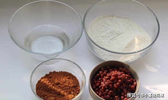 糯米粉150克、水180克、糯米粉50克、蜜紅豆150克、紅糖60克
