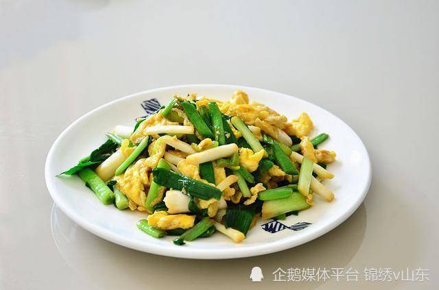 【食材】:嫩蒜苗一把,雞蛋3個,食鹽適量,料酒1小勺,食用油適量