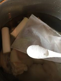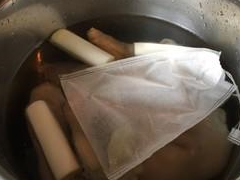 2.(八角,香葉兩片,桂皮一小塊,丁香幾粒放入一次性的紗佈包)