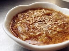 19.大蒜搗成蒜泥,加入適量食鹽、白糖一點點、生抽一點點、米醋適量、香油適量、芝麻適量,蘸食