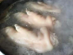 5.燒一大鍋水豬蹄焯水,撈出溫水洗凈豬蹄備用