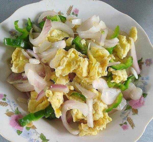 配料表:洋蔥、青椒、雞蛋、料酒、鹽;