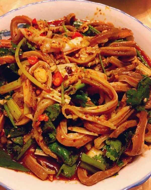 原料:豬肉300克;米酒;1小塊生薑;香菜、白芝麻和紅辣椒片;蔥;醬油;生抽、蠔油、糖、辣椒油、香油、雞精、蒜茸