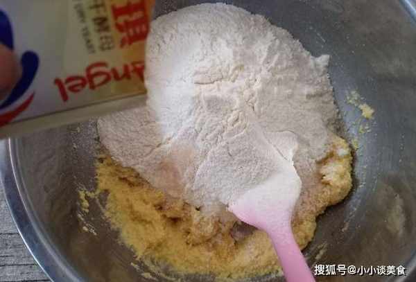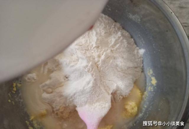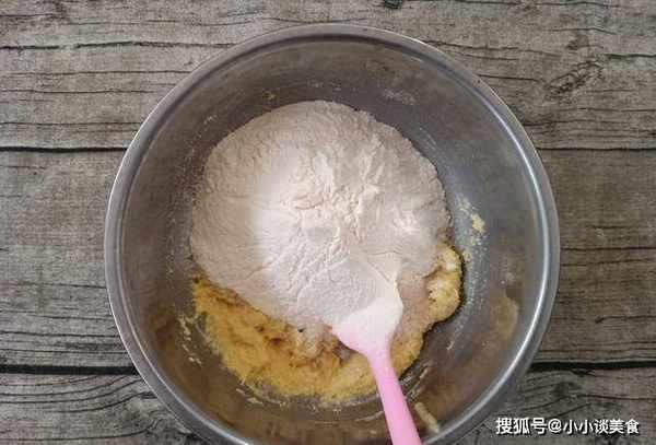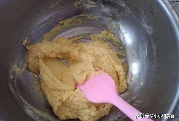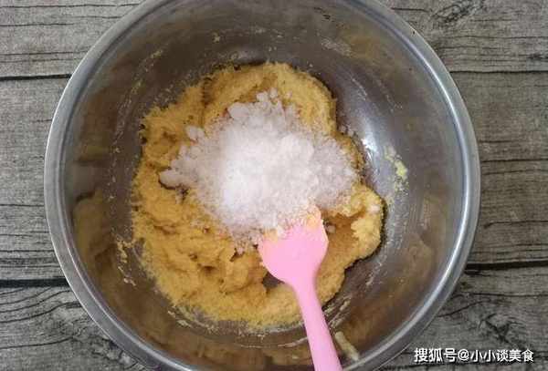 4.待小米面團冷卻至溫熱時,加入細砂糖。