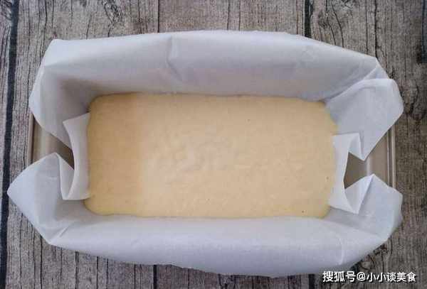 12、將打好氣的面團倒入長方形。(我鋪瞭油紙,你也可以塗油以免粘)