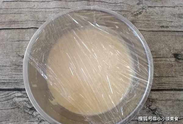 9、和好的面團蓋上保鮮膜,放在溫暖的地方發酵一個小時。