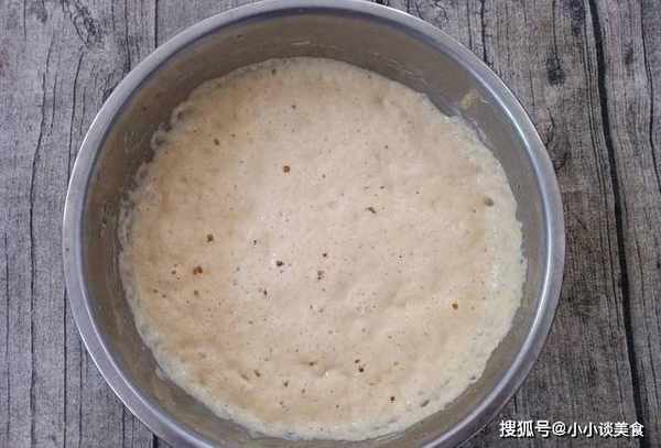 11.發酵完成後,用抹刀將面團充分攪拌,使面團中的氣體釋放出來,面團的體積會再次縮小。