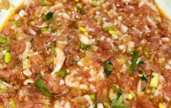拌鴨餡的時候加入適量的薑末可以去除肉餡的腥味,加入大蔥可以讓主肉餡更好聞。