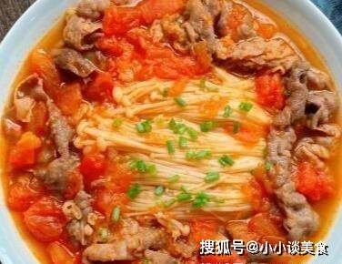 這道菜中,番茄略帶酸味,吃起來比較入味。其中的維生素C可以健胃消食,清熱解毒,金針菇味道鮮美。富含蛋白質的牛肉等也能提高免疫力。
