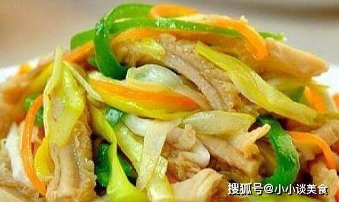 4、待材料熟透後,加入青、紅辣椒塊和適量雞精,大火收汁,翻炒均勻後即可食用。