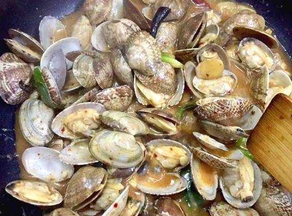 在熱鍋中加入橄欖油。油熱至高溫後,將蒜、薑、幹辣椒放入鍋中炒香,然後放入豆瓣醬,翻炒後加入蛤蜊,翻炒2分鐘,加入適量生抽、油用量、鹽、五香粉、雞精適量,加水適量,大火慢燉5分鐘,一個清炒貝殼就做好瞭。又香又好吃。