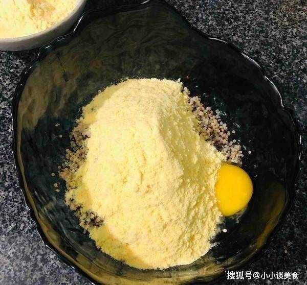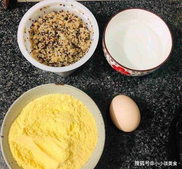 玉米面1碗、藜麥1碗、雞蛋1個、白糖2湯匙、水或牛奶適量