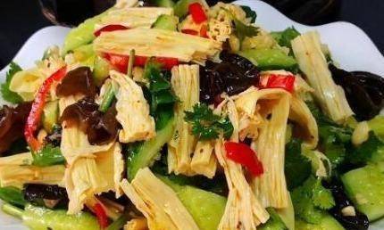 配料表:黃瓜、腐竹、大蒜、鹽、香油、辣椒油、醋、醬油